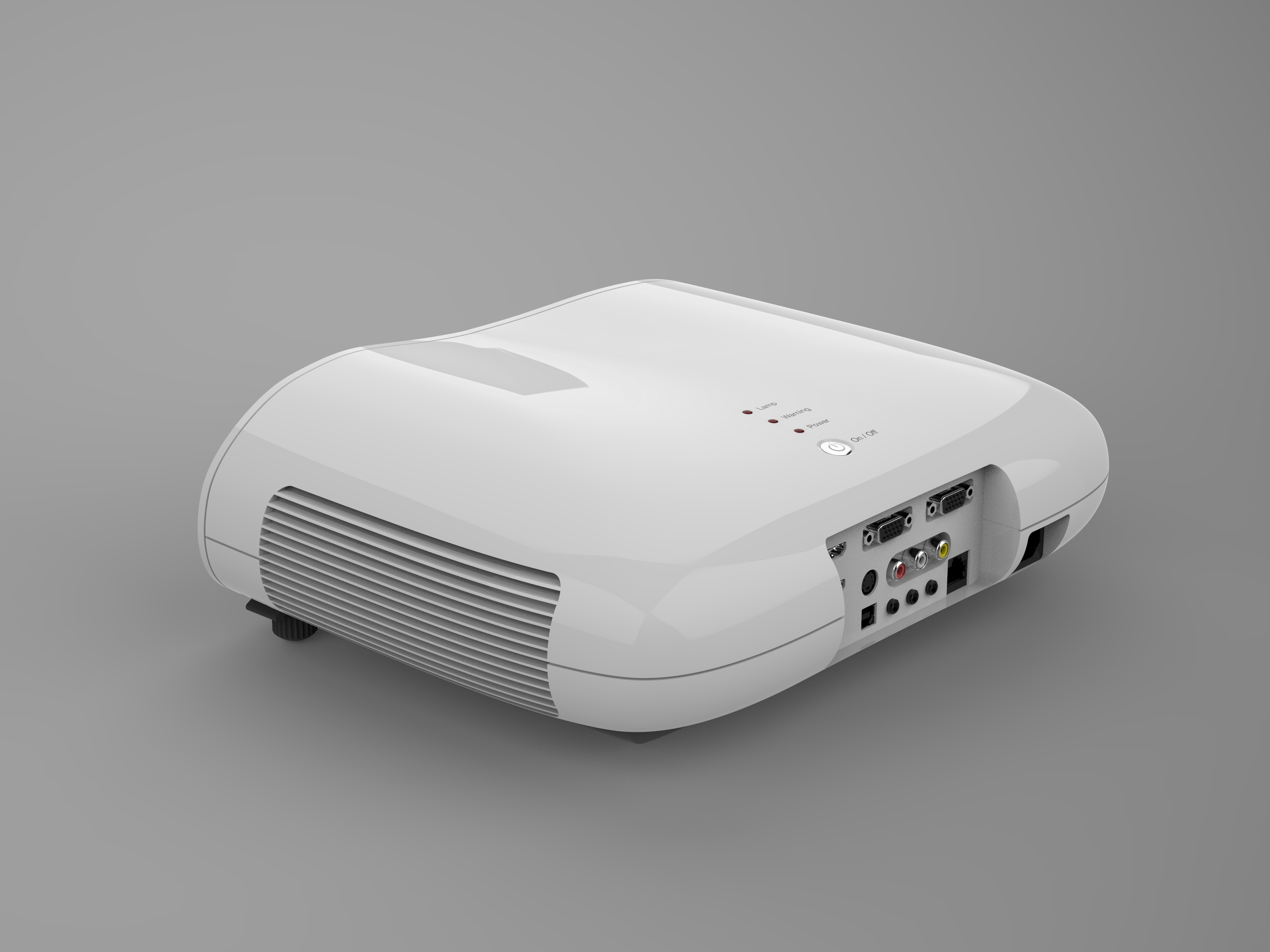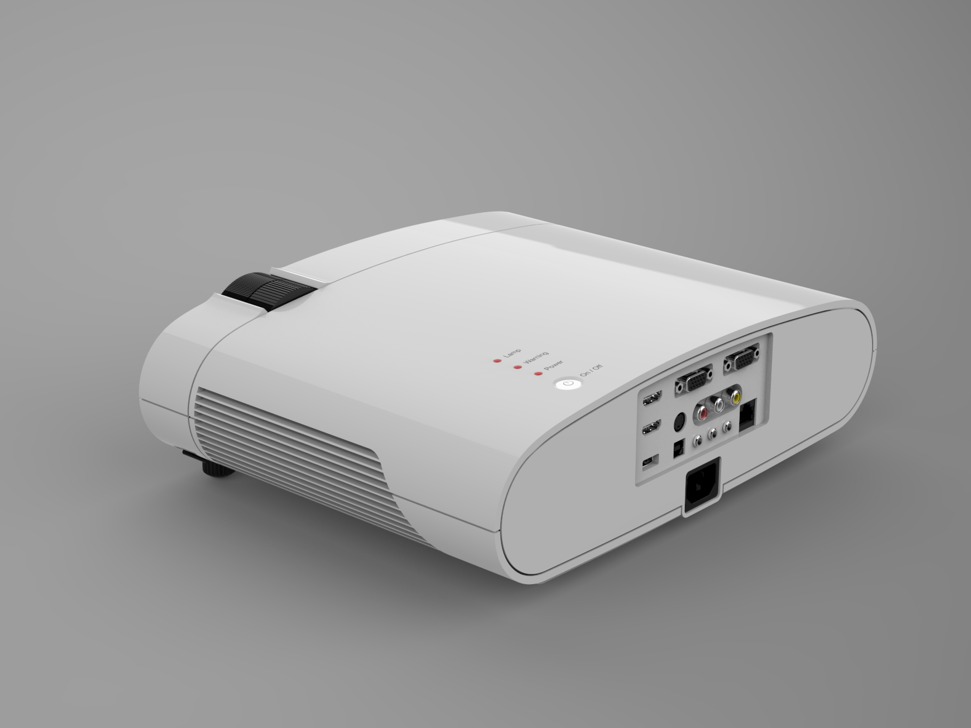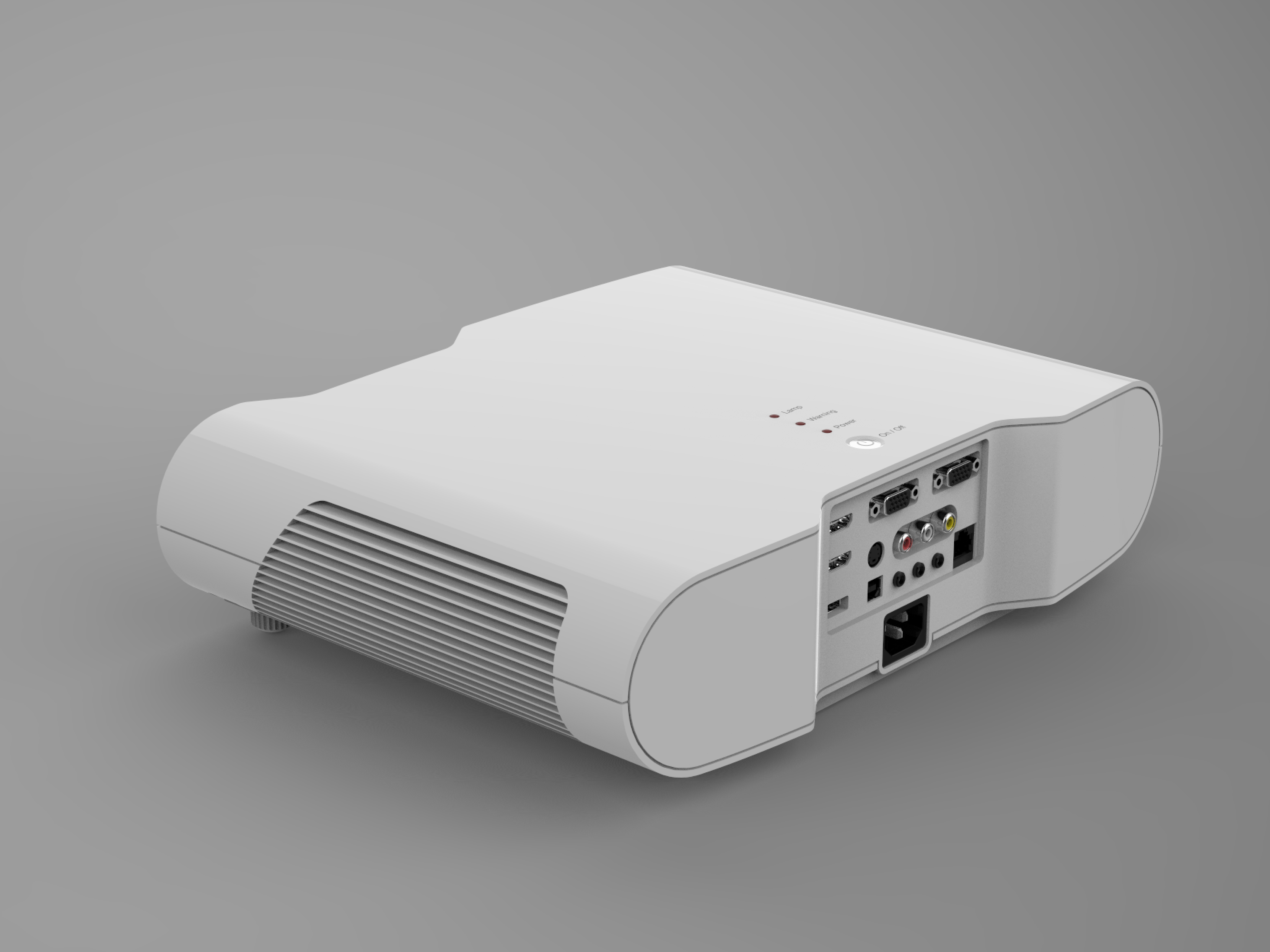 The aim of the development work was to design LCD-video projectors based on different design approaches. The design of the three products ranges from geometric and sober to sculptural and soft. The functions are largely controlled via the remote. Only the ON / OFF switch, lights for ON / OFF, warning and change lamp indicators are on the projector housing itself.